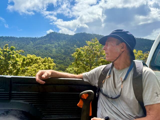 We just get to where the Syndicate River crosses the road and there is a local cleaning off his gear and filling up his water from the crystal clear waters of Syndicate River. (I don’t think it’s actually called Syndicate River but can’t seem to find the real name.) We ask and he agrees to take us down to the highway. We both fill up our waters and we jump in the box of his pickup. Half an hour later we’re at the highway. Great guy doesn’t want any cash, I even offer him my Stihl sunglasses to match his Stihl weed whacker but he says no. God bless.