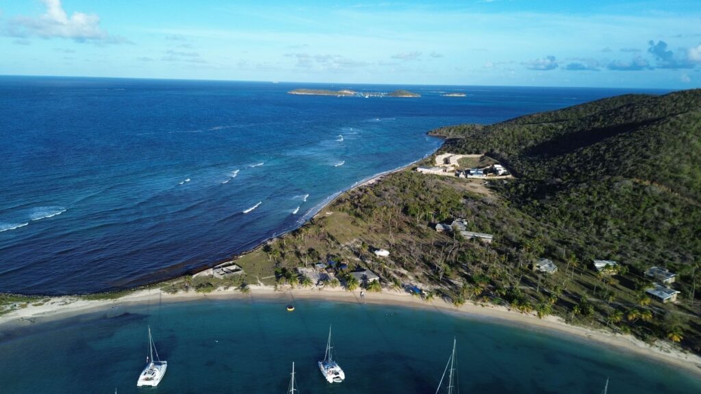 The Last Bar is pretty quiet at 11 am and their WiFi is good. I have my call with Metrolinx and pretty much close that deal. We finish our drinks and start the walk. Turns out to be a bit painful for Liz, I didn’t realize she got a strong sunburn while snorkeling so the sun beating down on her is uncomfortable and this walk is long and hot. Just as we pass the new kite surfer hotel I realize I left the dinghy keys in the dinghy. I jog back to get them while the girls continue. Takes a few minutes to warm up running barefoot in the sand but after a few hundred yards feels good. I catch up to them about 1/4 of the way along the path over the headland.